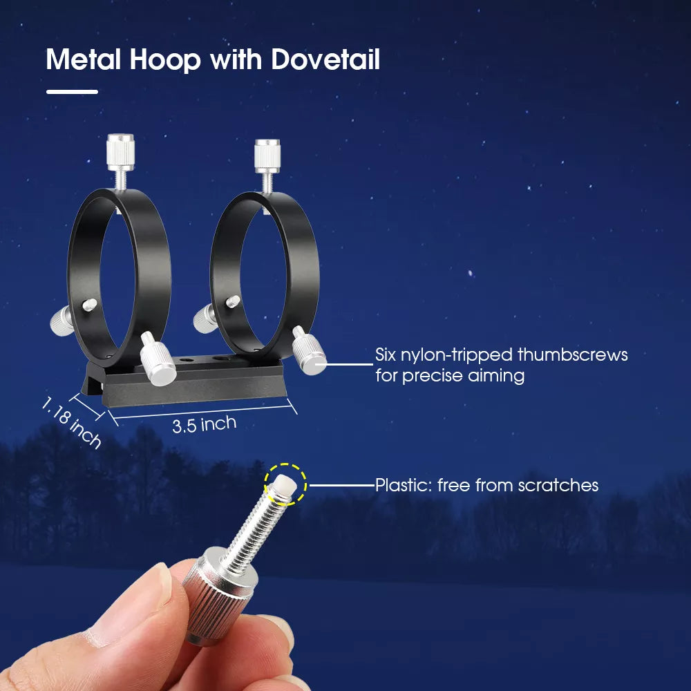 4. Durable Construction: Meticulously designed, the SV106 features a compression ring fitting to protect autoguider cameras and accessories from scratches. The CNC machined aluminum alloy body with laser engraving ensures durability for long-lasting performance. Fine-tune your focus effortlessly with the metal hoop and dovetail.
