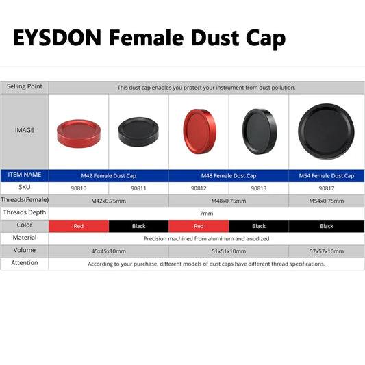 Don’t miss out on the opportunity to protect your valuable telescope eyepieces with the Fully Metal Dust Cap Cover.Regular price From $18.39 USDRegular priceUnit price perSale price From $18.39 USD -