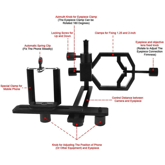 Multi-use Photography Adapter for Telescope / Binocular - Connect Camera or Smartphone