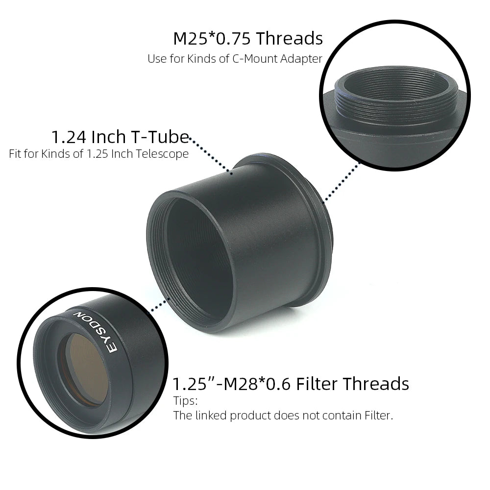 Filter Threads for Imaging Enhancement: Threaded for Standard 1.25" Eyepiece Filters, this adapter opens up possibilities for enhanced imaging experiences. Incorporate astro filters seamlessly to capture stunning details and colors in your celestial subjects.