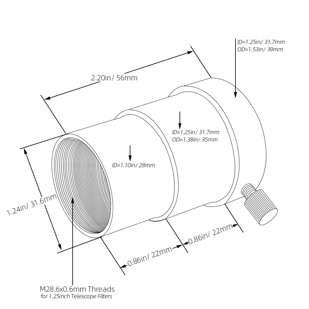 Designed to fit standard 1.25" eyepiece tubes in telescopes and accessories like diagonals, these extension tubes open up a world of possibilities. Now, eyepieces and accessories that were once challenging to use due to a short telescope tube can be seamlessly integrated, offering a more versatile and enjoyable stargazing experience.
