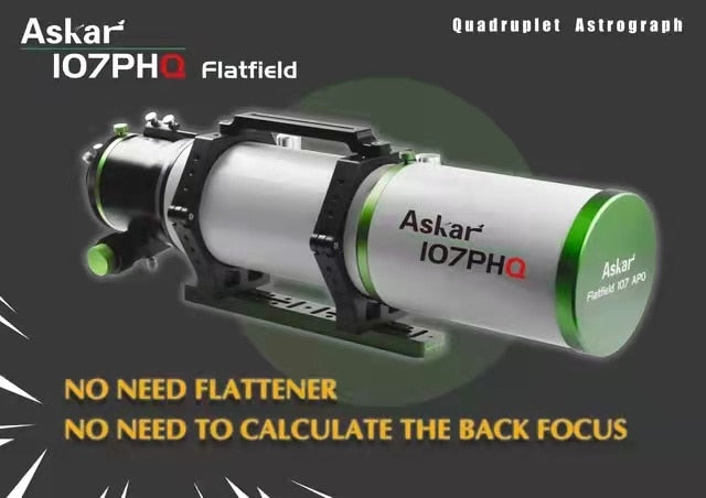 The Askar 107PHQ is a professional-grade refractor telescope designed for astrophotography enthusiasts. Featuring a 107mm aperture and an F/7 focal ratio, this quadruplet flat field astrograph delivers stunningly clear and sharp images of celestial objects.
