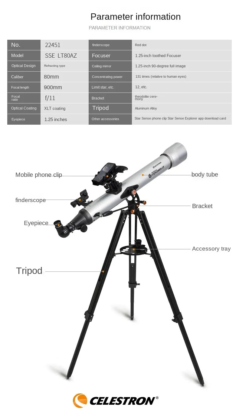 Discover the perfect blend of functionality with the best telescope for bird watching and astronomy – the Smartphone App-Enabled Refractor 80mm F/11 Astronomical Telescope Kit. Elevate your viewing experience with this versatile telescope designed for both terrestrial and celestial observations.