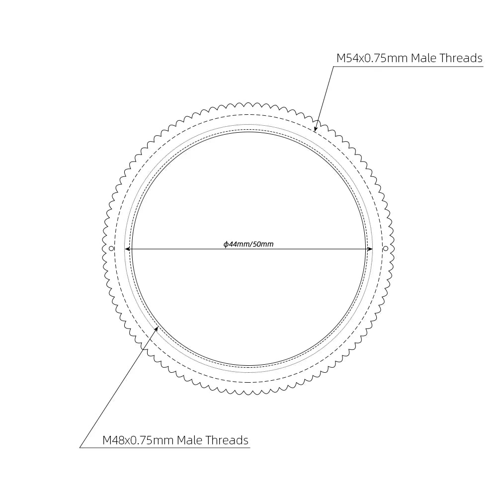 - Small External Thread: 4mm (M48x0.75mm)