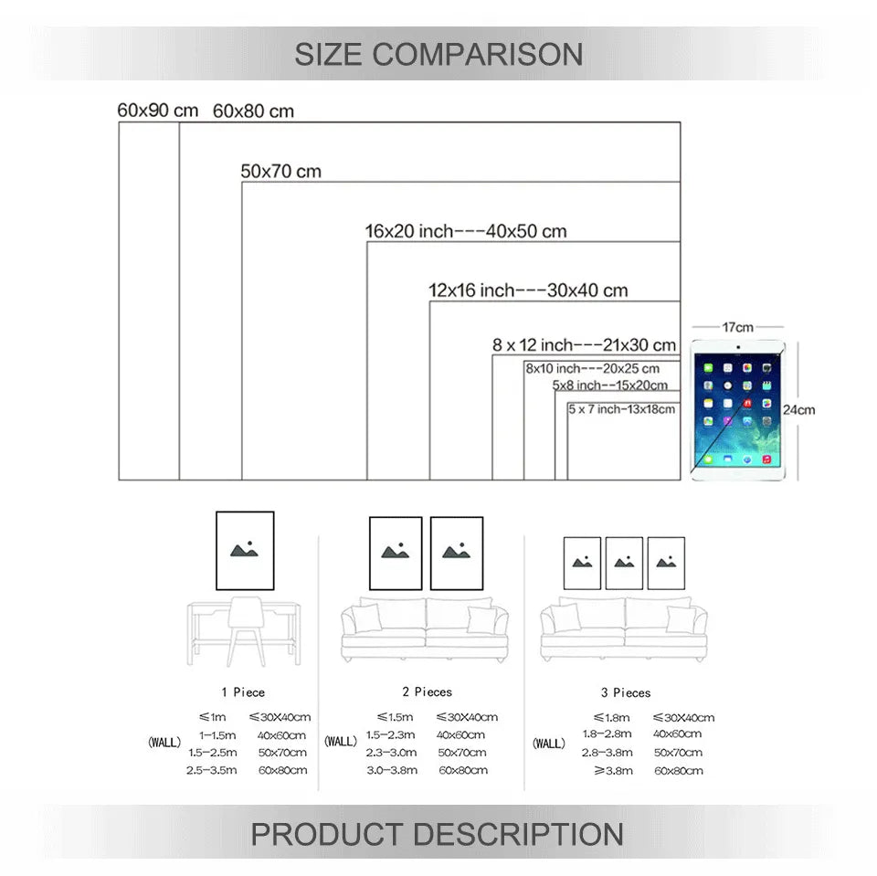 - Characteristics: Waterproof, moisture-proof, and boasting high tensile strength, this canvas poster is not just an artistic addition but also a durable and long-lasting one. Its characteristics make it suitable for various spaces, from the living room and bedroom to children's rooms, background walls, and more.