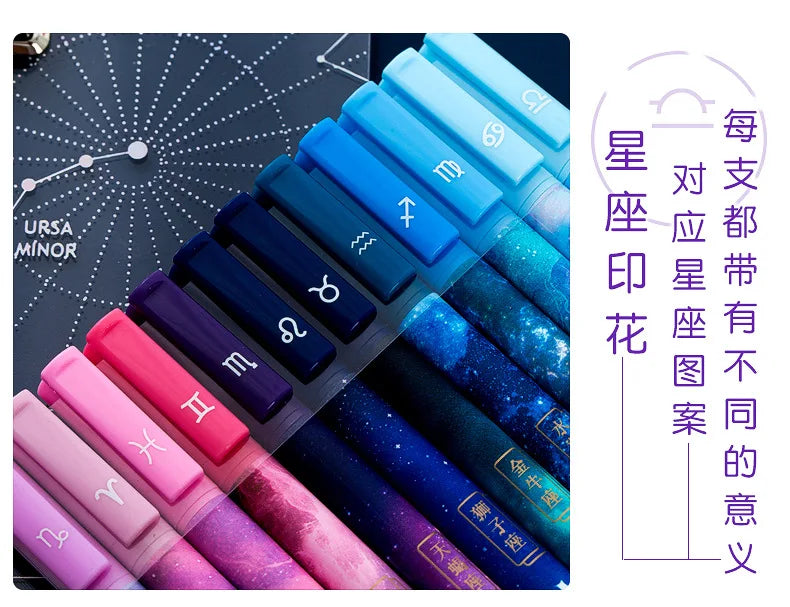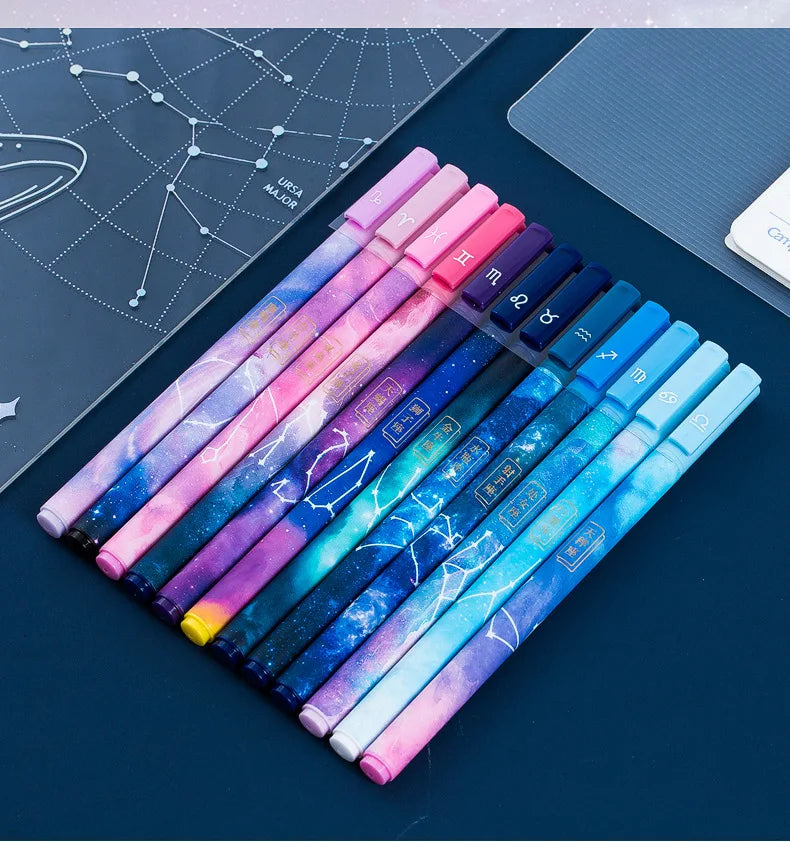 Discover the enchanting world of writing with the Zodiac Sign Pen Set, a celestial masterpiece that combines functionality and style. Elevate your writing experience with this unique 3pc Constellation Gel Pen collection, featuring a 0.5mm Starry Black Ink that's perfect for both students and professionals alike.